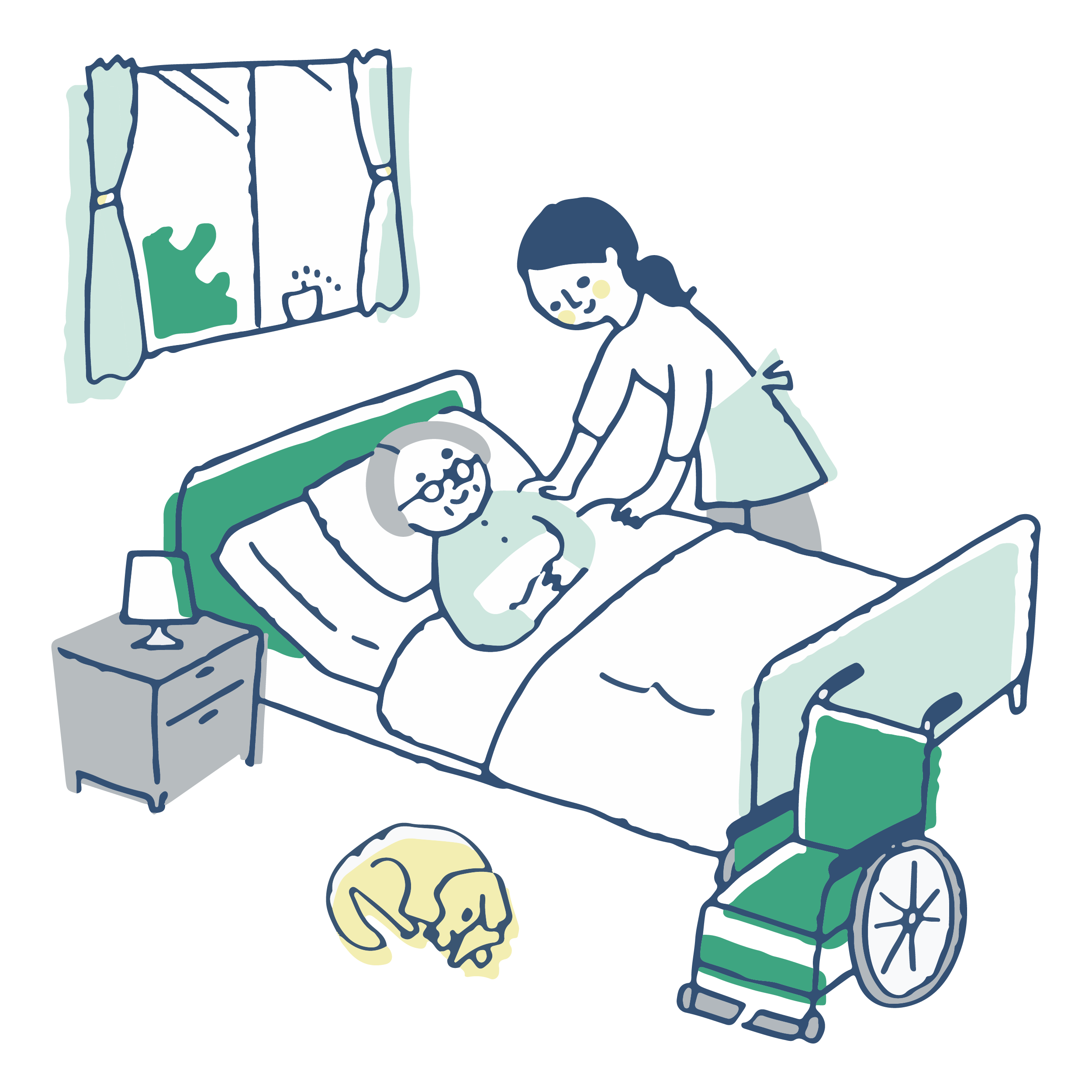 ご利用者様が単身、ご家族がご病気などの場合に自立支援やご家族の負担軽減のために適切なサービスをご提供いたします。